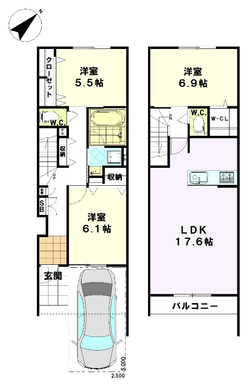 LDK17.6・洋室6.9・洋室6.1・洋室5.5 |