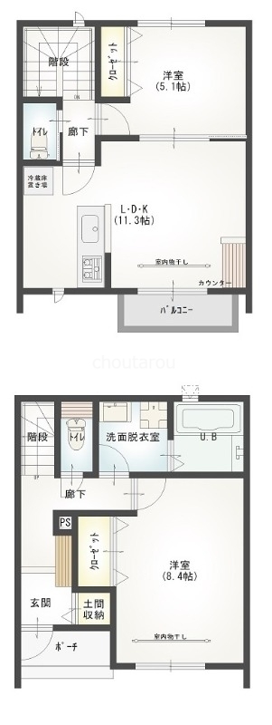 洋室8.4・洋室5.1・LDK11.3 |