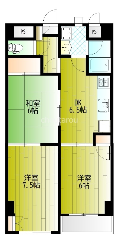 洋室7.5・洋室6・和室6・DK6.4 |